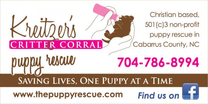 Every donation made helps us in our efforts to save and find loving forever homes please join us at frank liske park in concord, nc for a fun and healthy walk/run with your dog to support kreitzer's critter corral puppy rescue.
